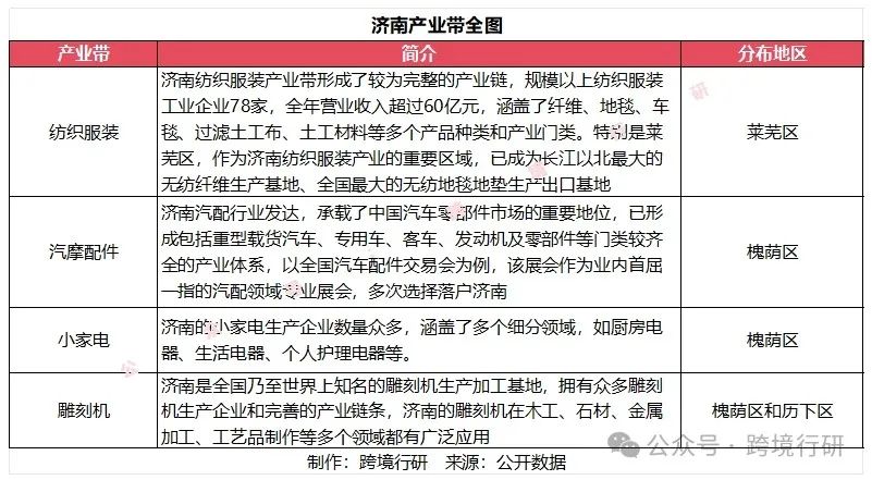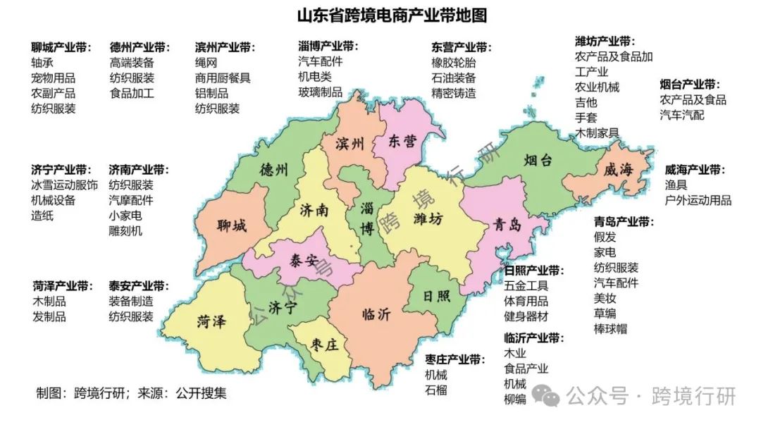 济南及其周边地区拥有强大的工业基础,制造业企业数量众多,为跨境电商提供了丰富的产品资源和供应链支撑。纺织服装、汽摩配件、小家电、五金工具、农产品等产业带优势明显。